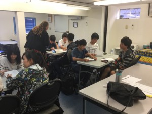 本校の生徒以外も一緒のクラスになっていて、いろんな国の生徒と授業をうけています。
