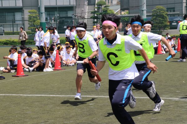 体育祭では,様々な団体種目や徒競走,クラス対抗リレーを行い,クラス毎に得点を競い合います。