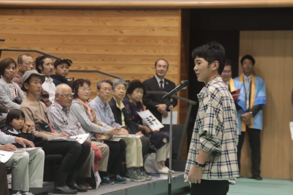 代表生徒が,民泊家庭の皆様に向けて挨拶の言葉を送りました。