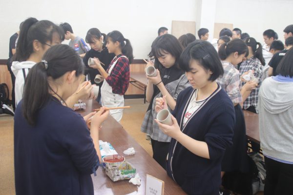 自分だけのオリジナルの絵付けをするため,各自真剣な眼差しで絵付を行なっていました。